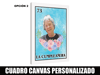Hacemos la carta de lotería personalizada con tu foto y la imprimimos en un CUADRO CANVAS CON BASTIDOR en medidas de 40 cm de altura x 30 cm ancho (Listo para colgar)